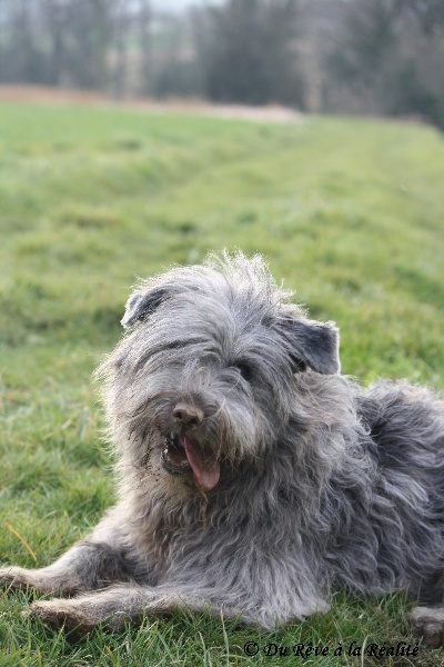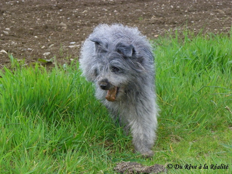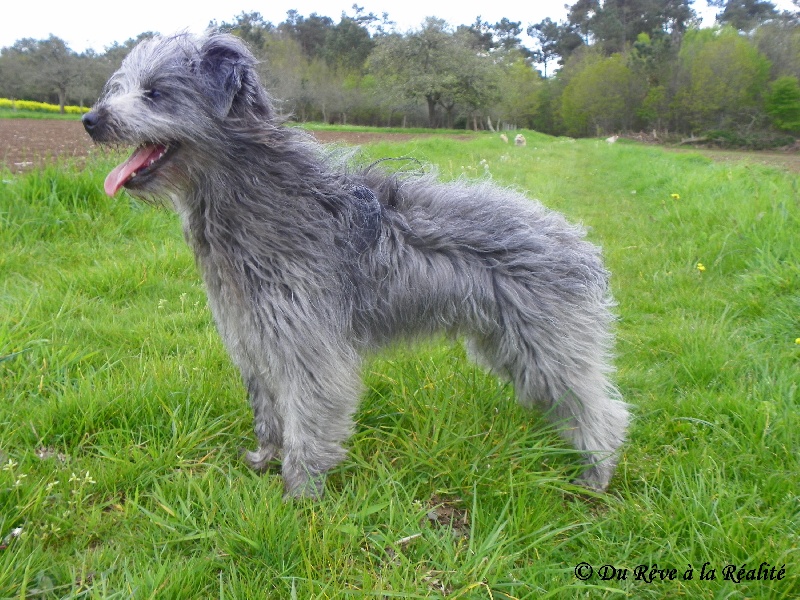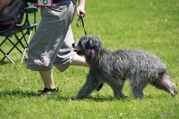 2 ans et demi. Belle expression. Très bonne construction d'ensemble. Excellente angulation mais panarde des postérieurs au statique. Très bonne ossature. Dos tendu. Manque 2 PM2. Excellente pigmentation. Tête conforme. Port d'oreilles symétrique. Les allures sont régulières mais manquent d'amplitude.